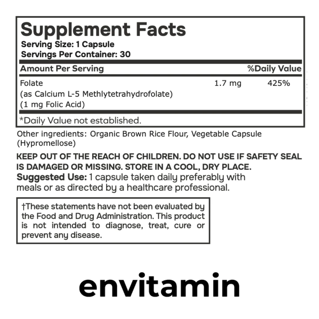 Envitamin’s methylfolate is vegan, non-GMO, gluten-free, soy-free, and free of artificial colors or preservatives - making it suitable even for sensitive individuals. Its simplicity and purity allow for easy digestion and consistent use.